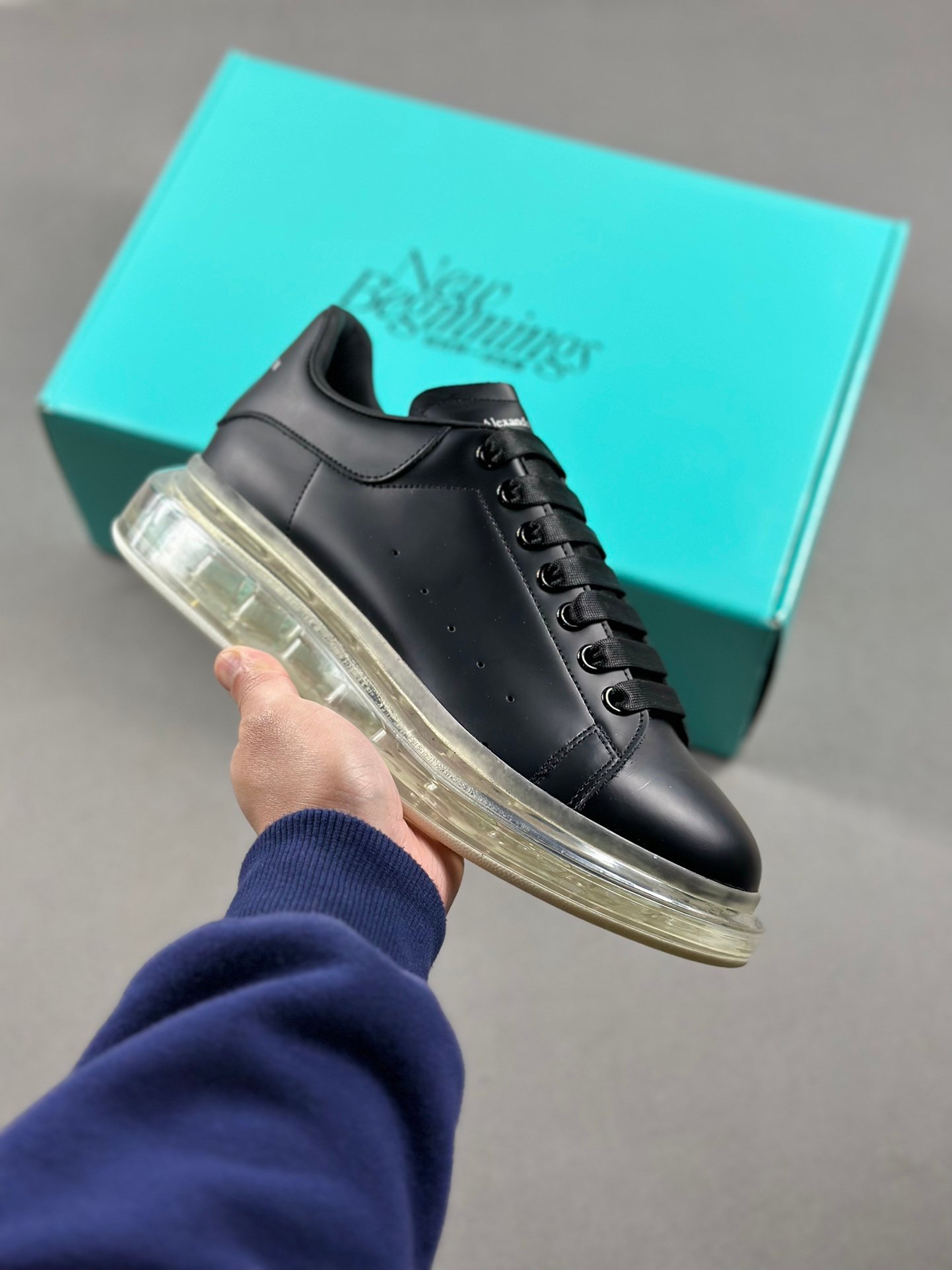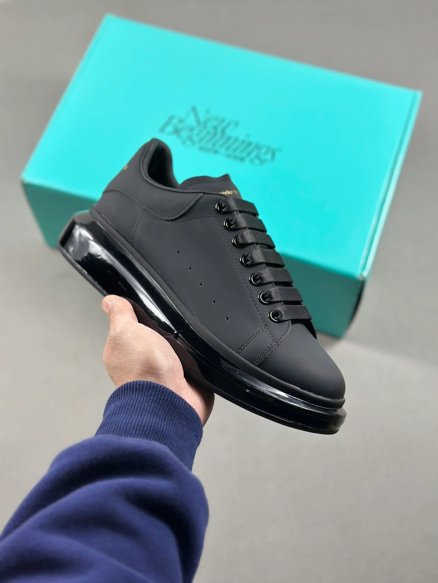 Alexander McQueen Black Low-Top Sneakers (Black Leather Heel)