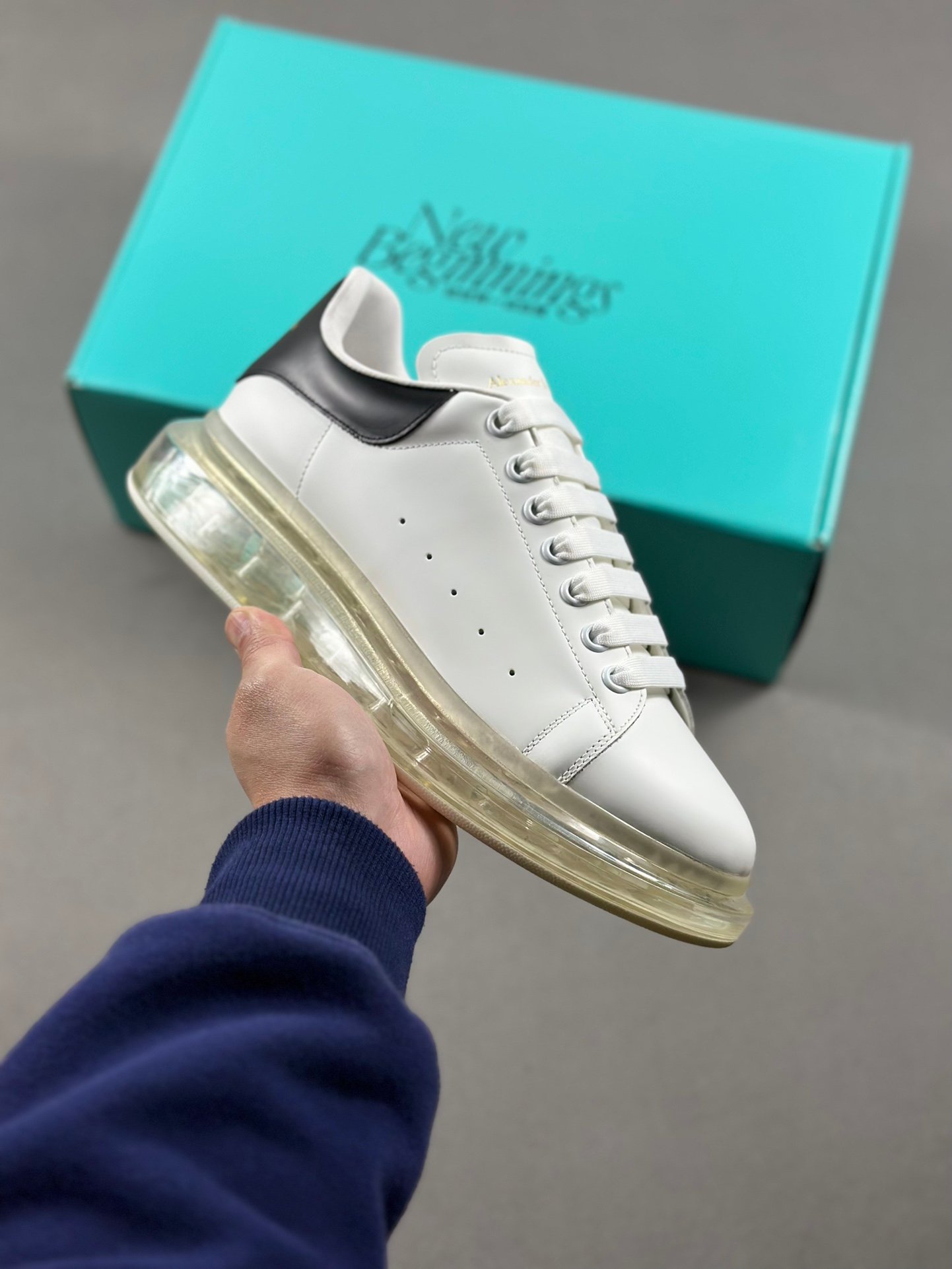Alexander McQueen White Low-Top Sneakers (Black Leather Heel)