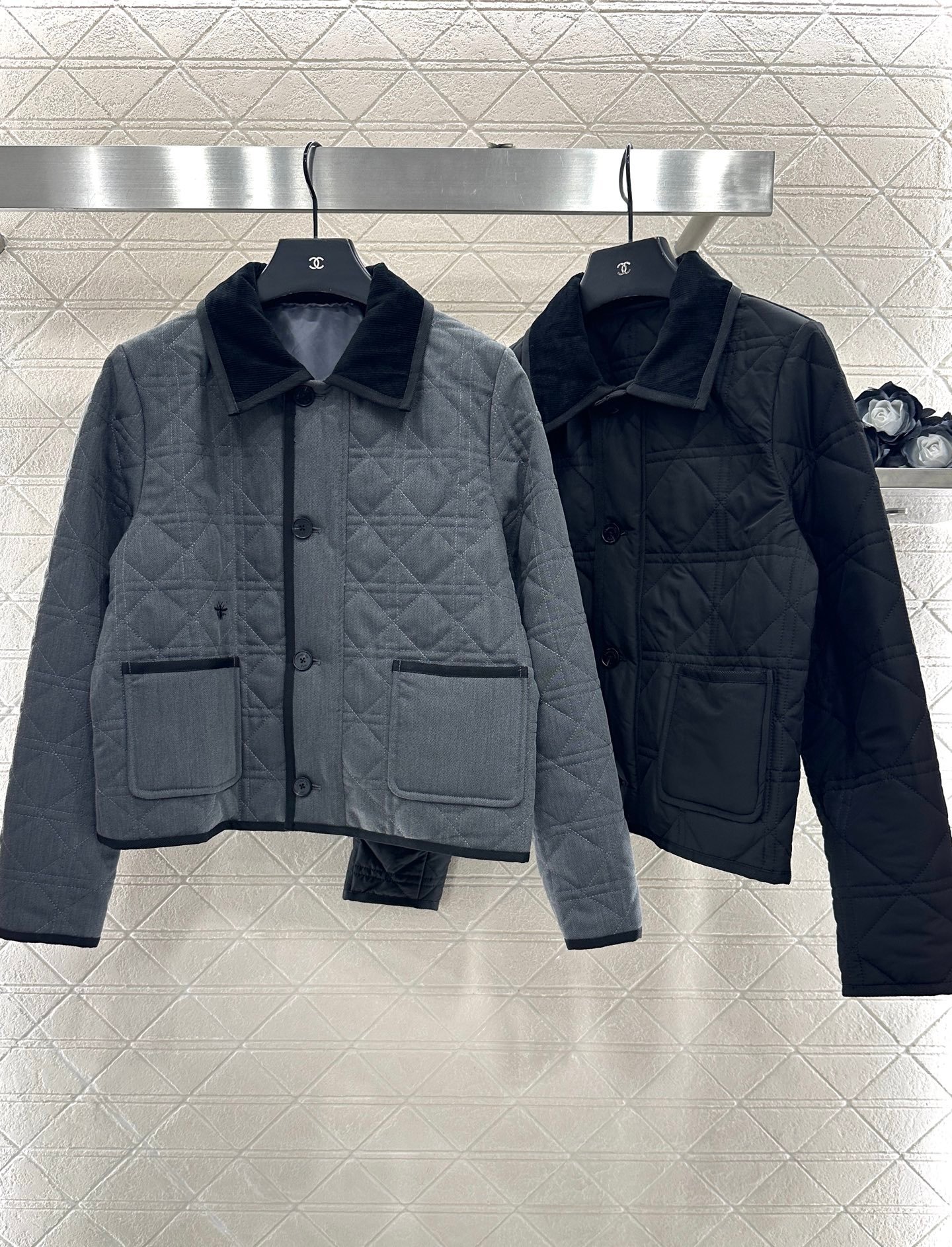 Quilted Button-Front Jacket with Contrast Collar (Available in 2 Colors)