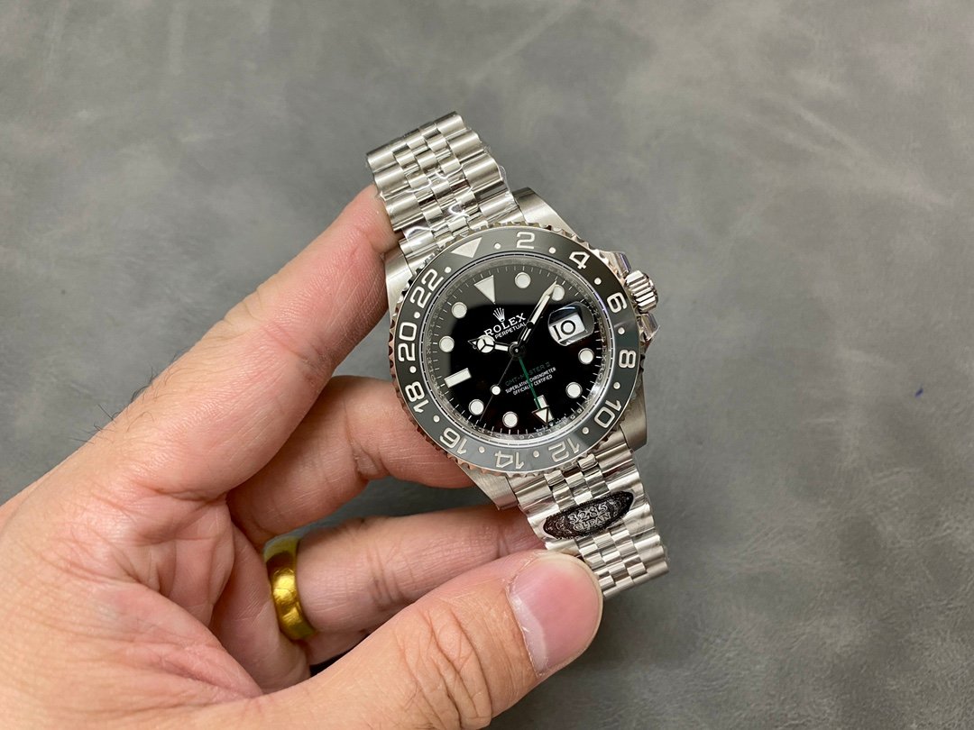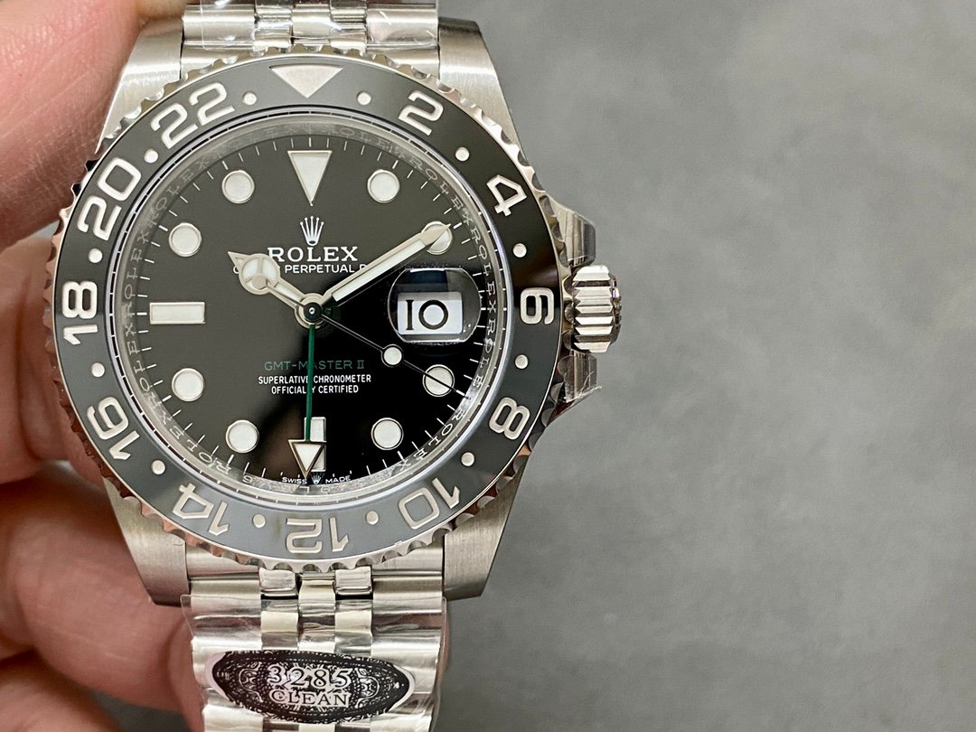 An iconic Rolex GMT-Master II featuring a 40mm stainless steel case, black dial, and dual-time functionality. Designed for precision, durability, and timeless style.