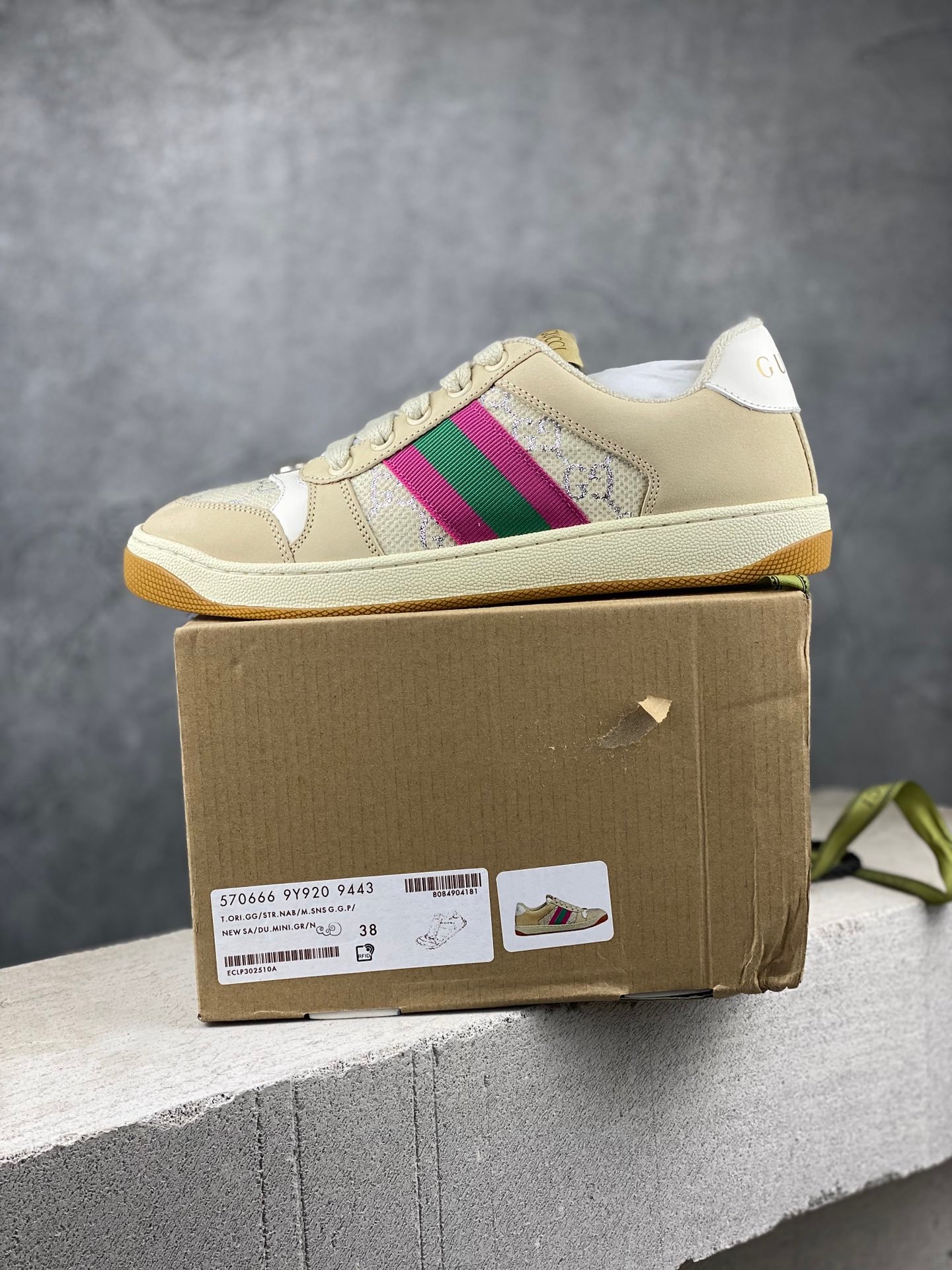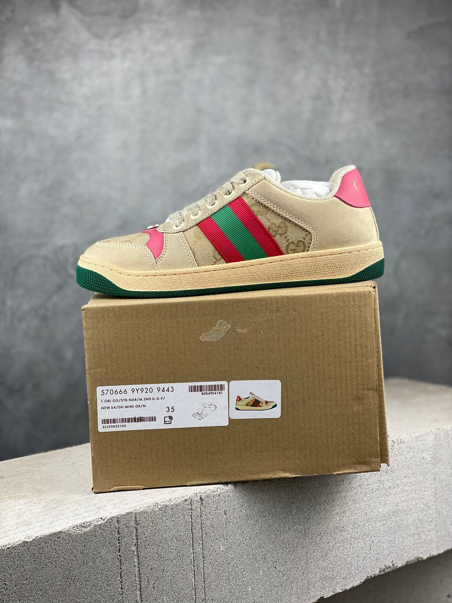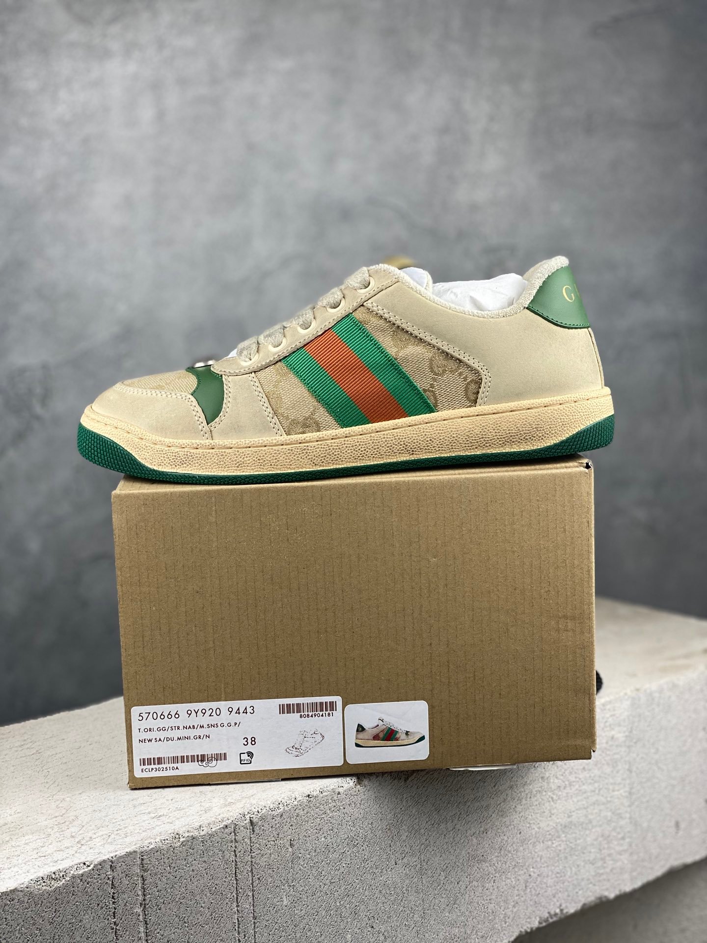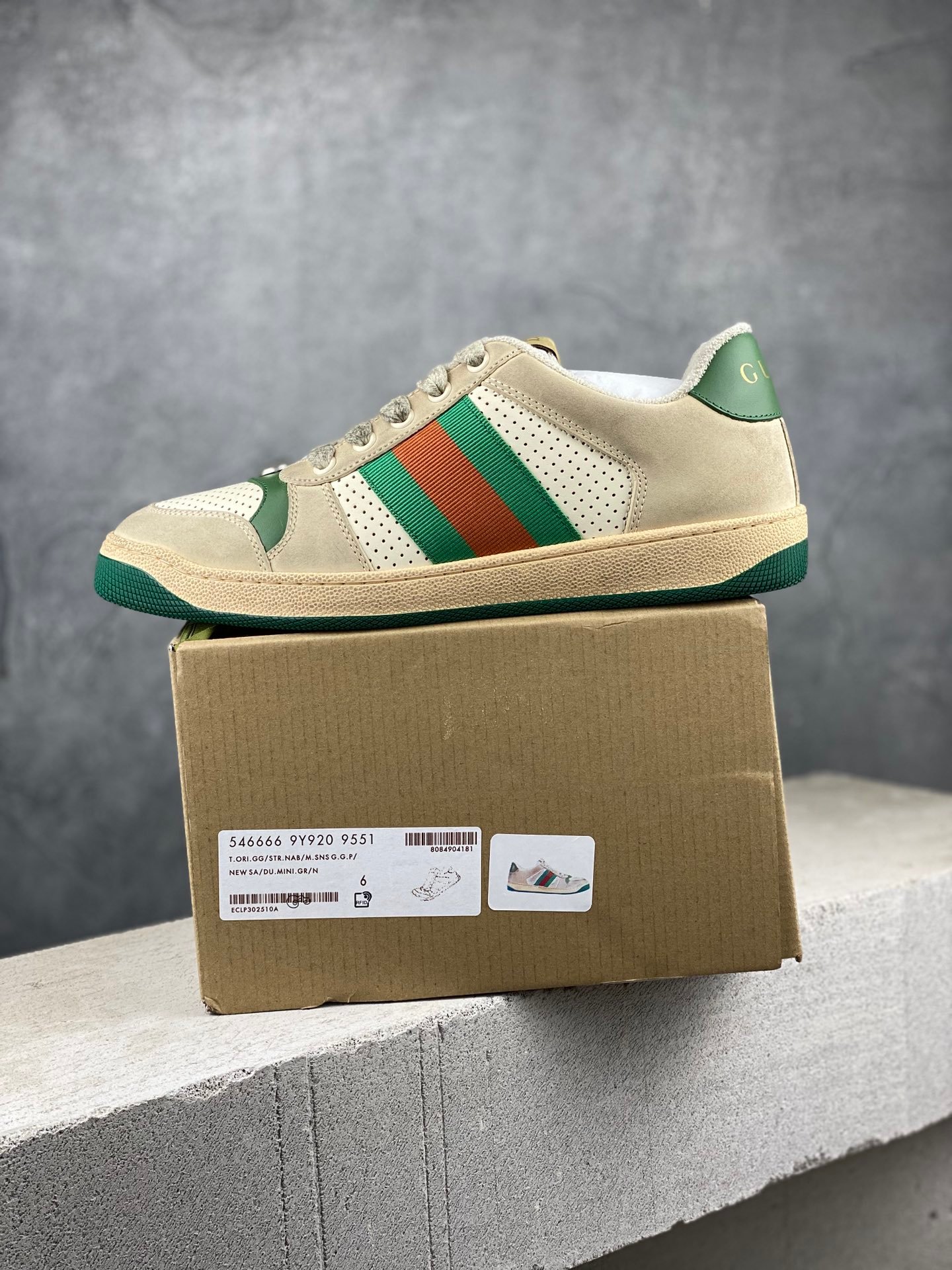 Gucci Distressed Classic Sneakers – Green/Orange Stripe