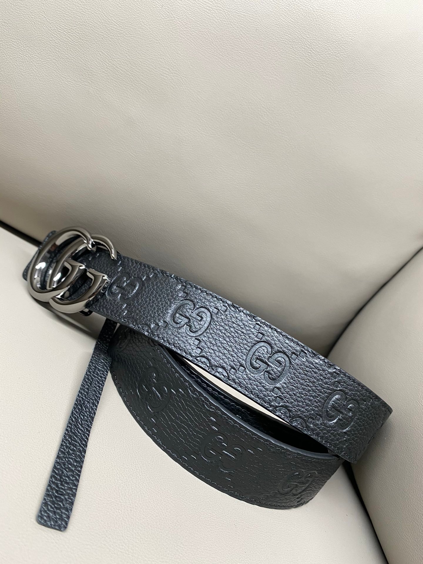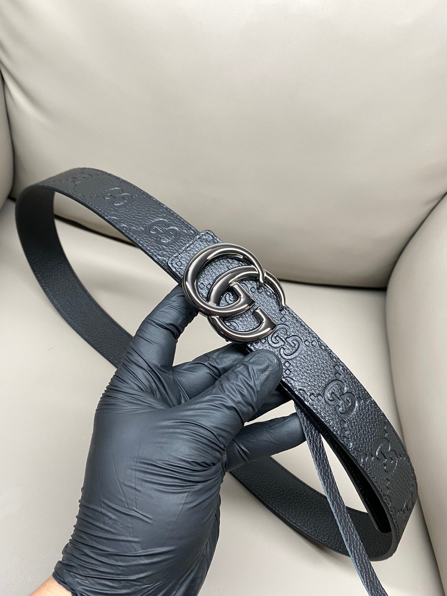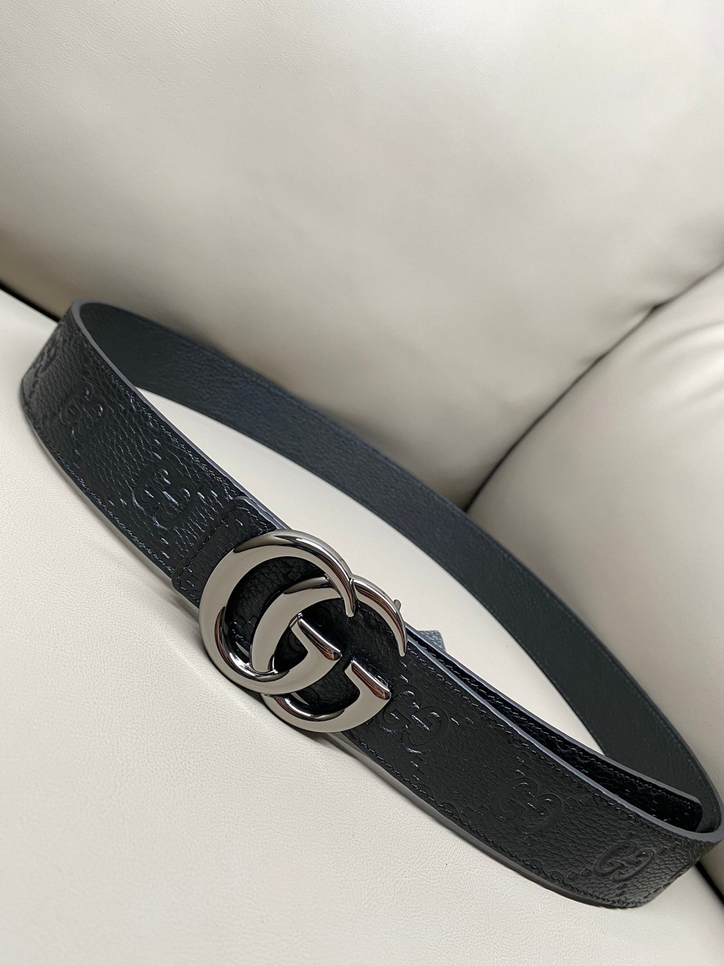 Gucci GG Leather Narrow Belt with Double G Buckle – GG Leather
