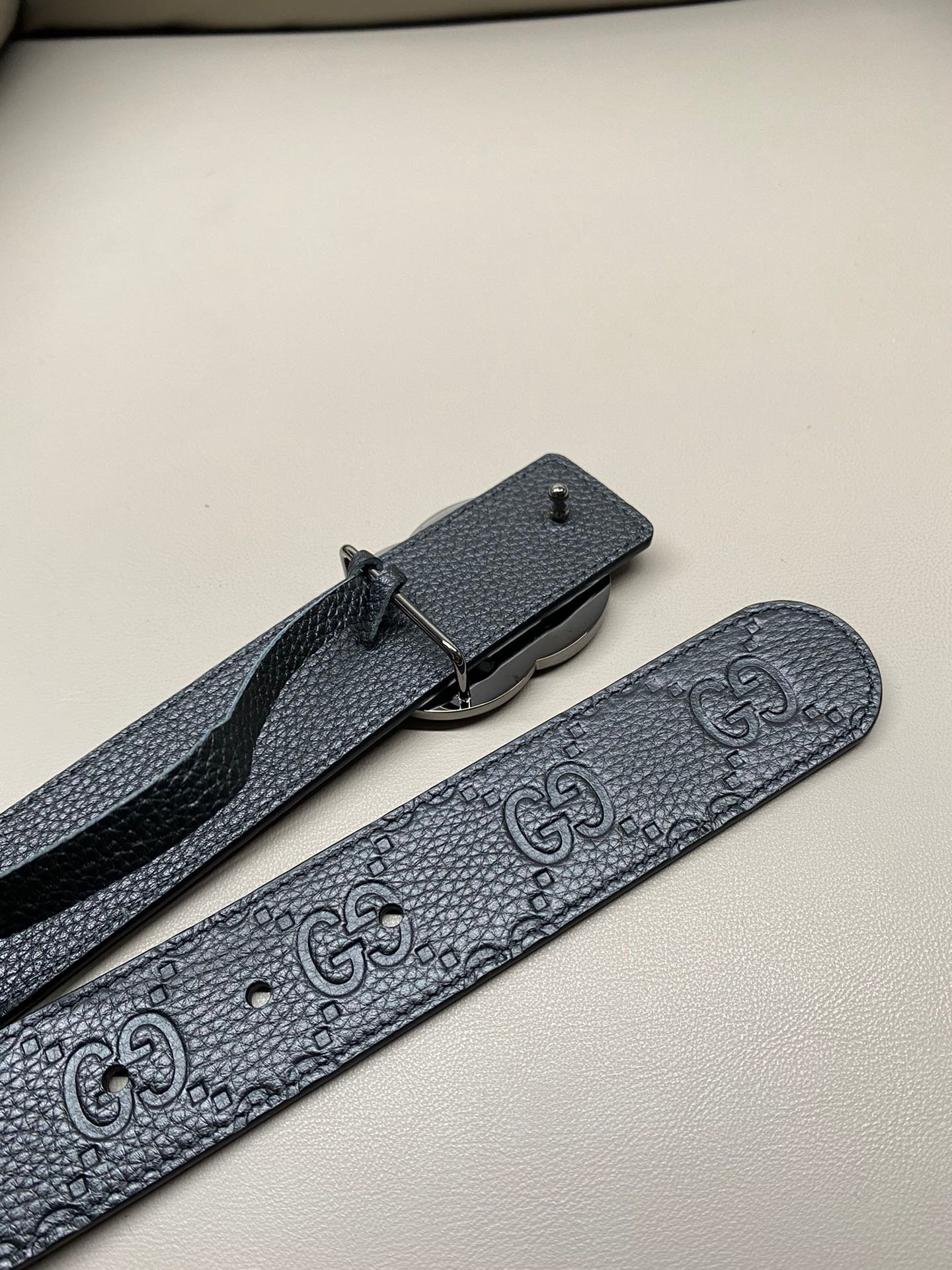 Gucci GG Leather Narrow Belt with Double G Buckle – Blue GG Leather