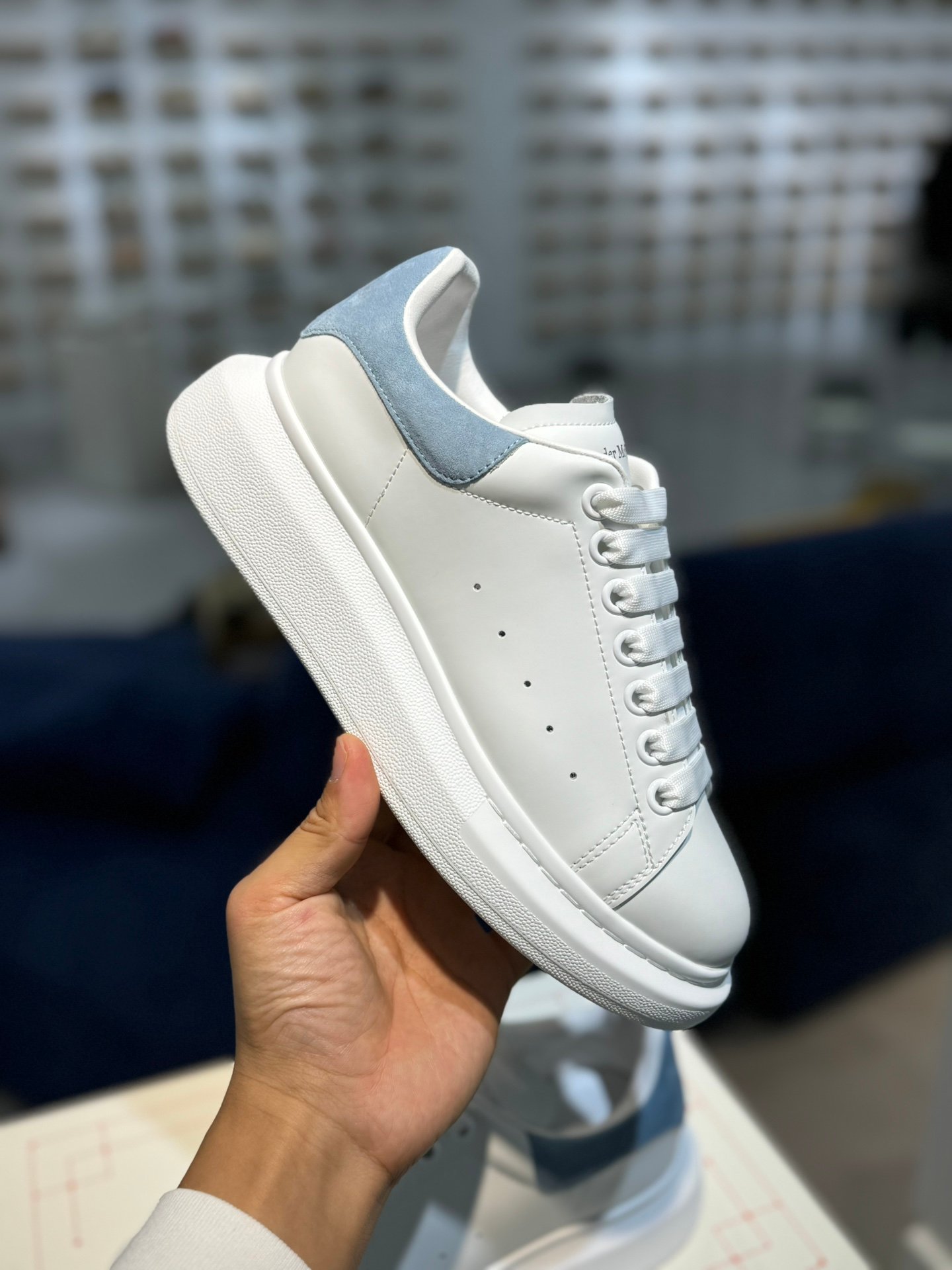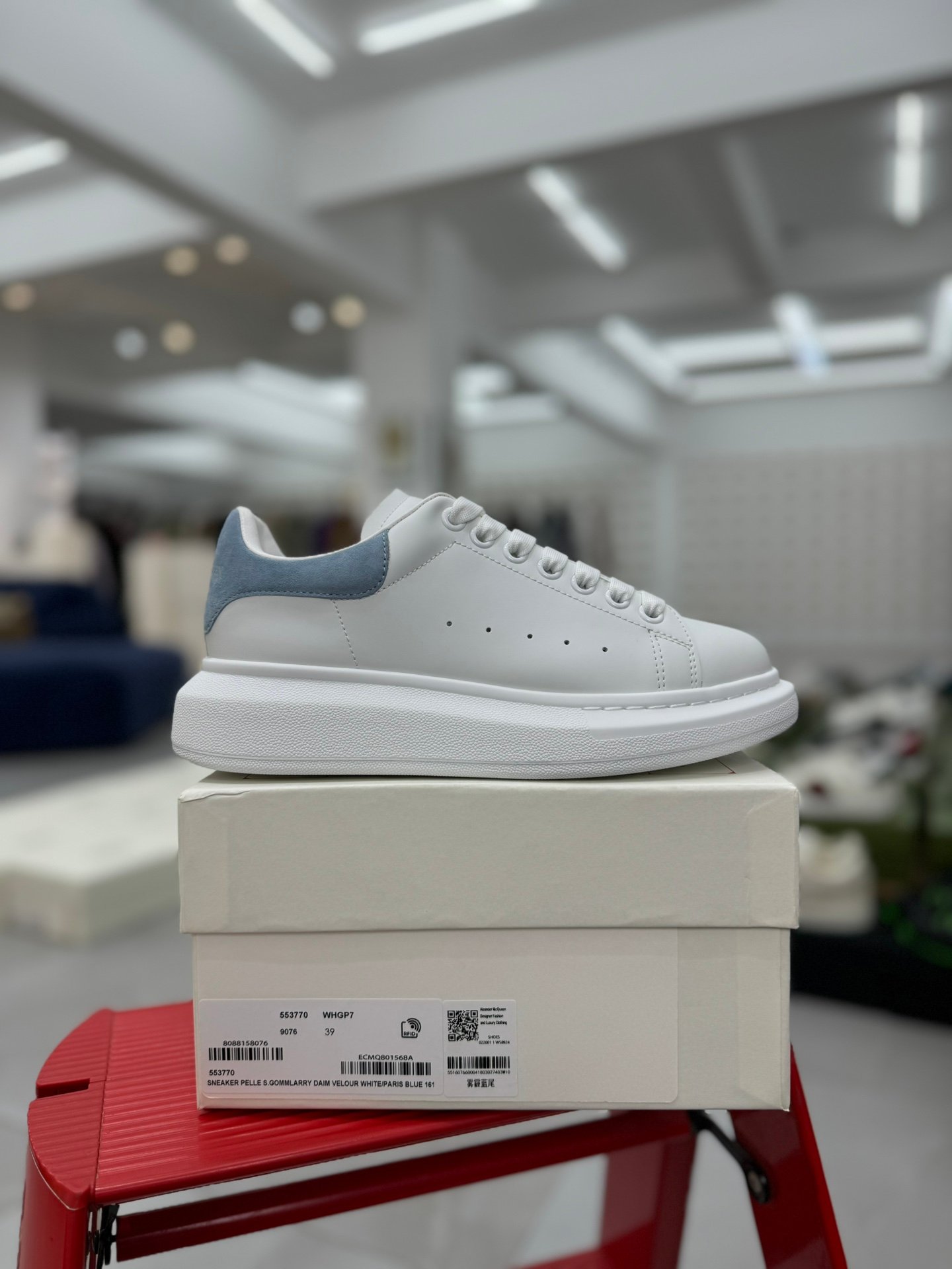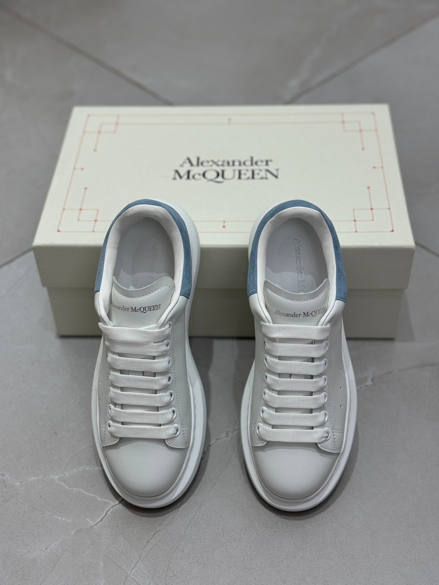 Alexander McQueen White Low-Top Sneakers (Suede Heel)