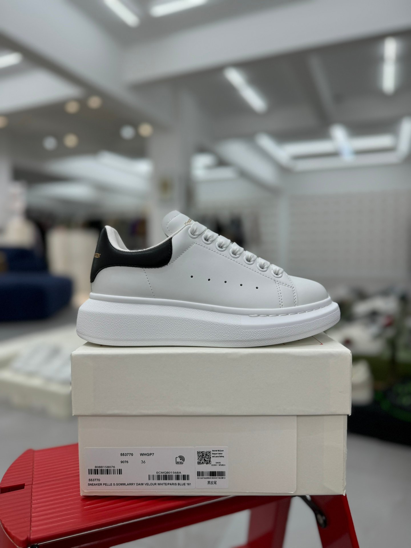 Alexander McQueen White Low-Top Sneakers (Black Leather Heel)