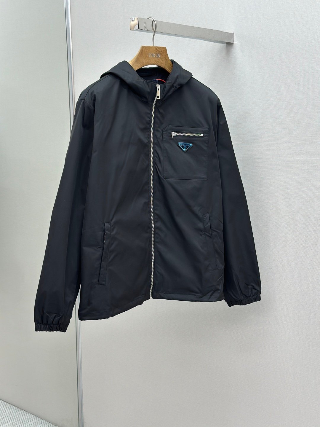 Prada Triangle Logo Zip-Up Hooded Jacket