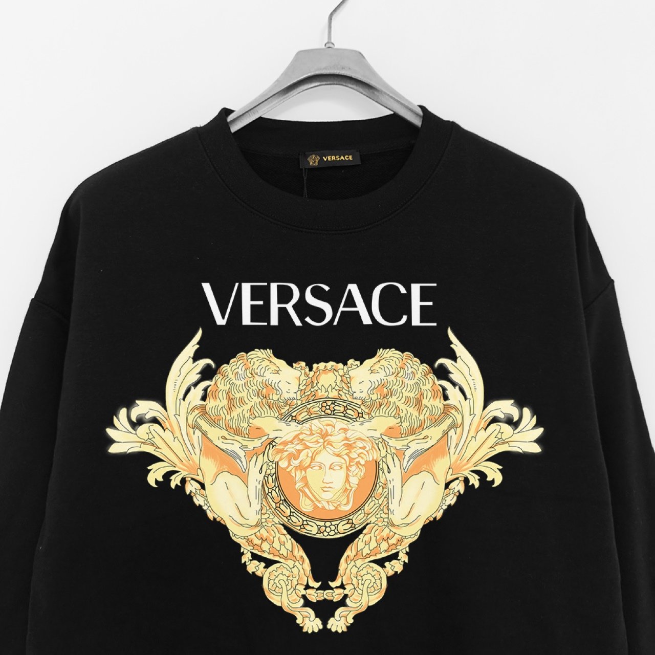 Versace 380g Printed Terry Round Neck Sweatshirt – Black (Floral Medusa Design)