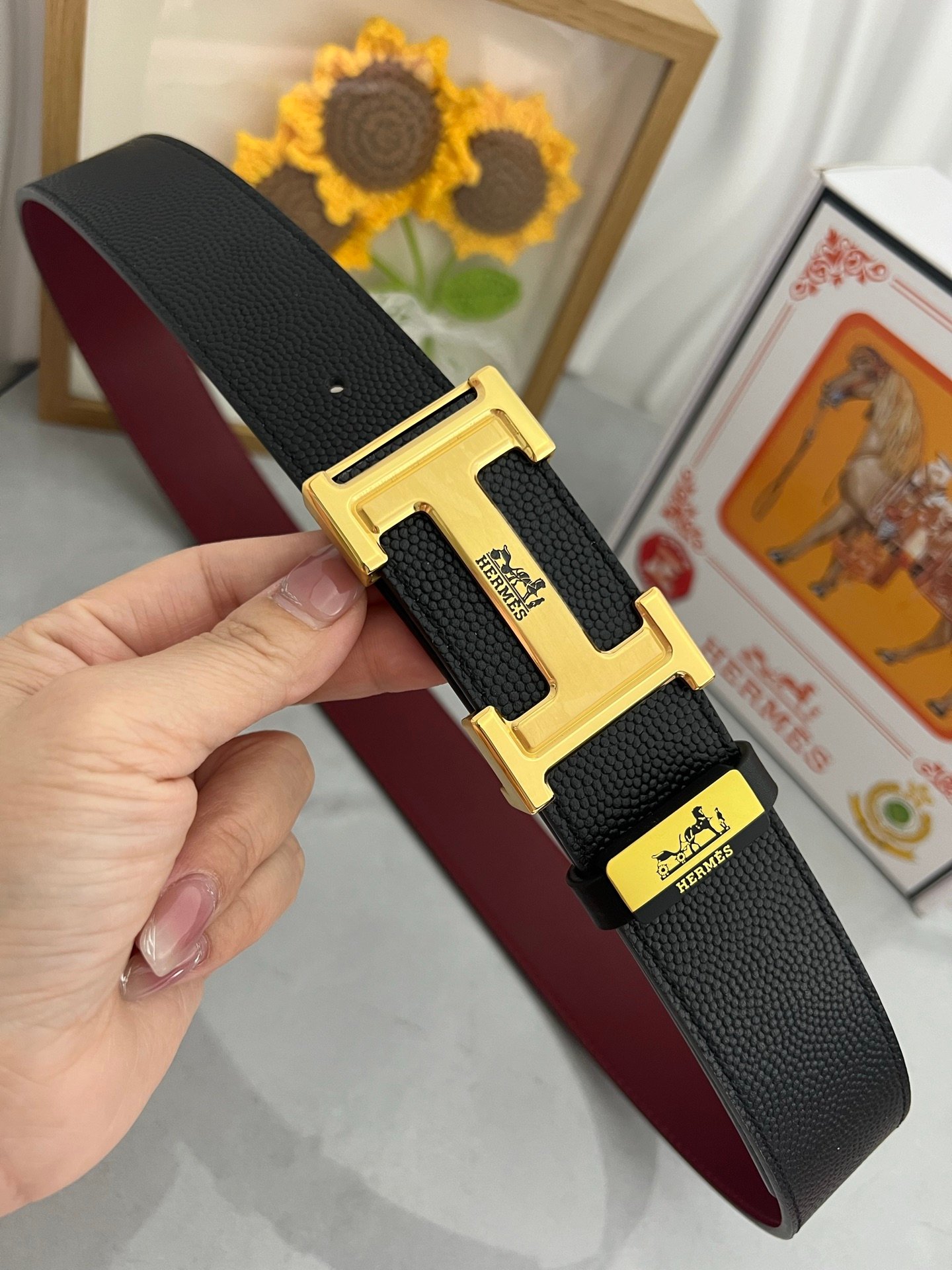 Hermès H Buckle Belt – Black Top-Grain Cowhide Leather (Gold Buckle)
